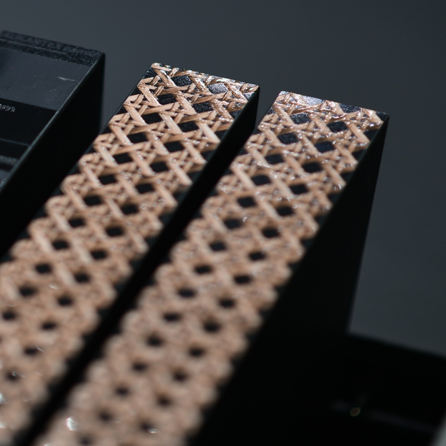 Unikalny wygląd oferuje również RAUKANTEX canvas – obrzeże klasy premium, szczególnie polecane do strukturalnych lub intensywnie wzorzystych blatów i powierzchni meblowych. Nowatorskie rozwiązanie pozwala odwzorować dekor bez widocznych powtórzeń wzoru, z dużą szczegółowością i realistycznym efektem 3D. Możliwe są także indywidualne projekty – od akcentowych obrzeży po motywy na zamówienie, takie jak logotypy – bez kompromisów w zakresie obróbki i trwałości.